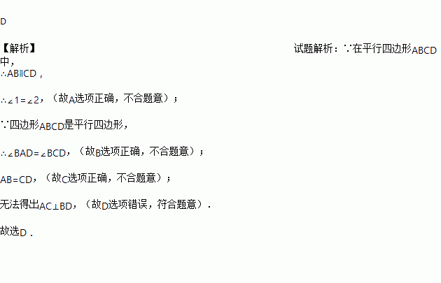 如图,在平行四边形中,下列结论中错误的是( )