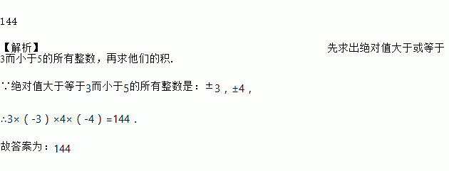 绝对值大于或等于3而小于5的所有整数的积为________.