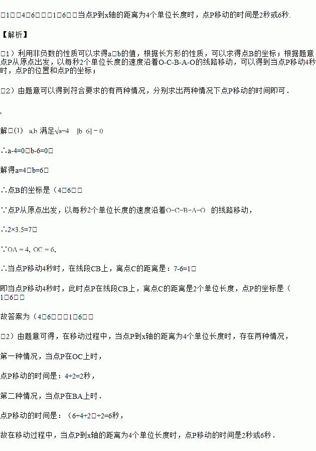 (2)在移动过程中,当点P到x轴的距离为4个单位长度时,求点P移动的时间;