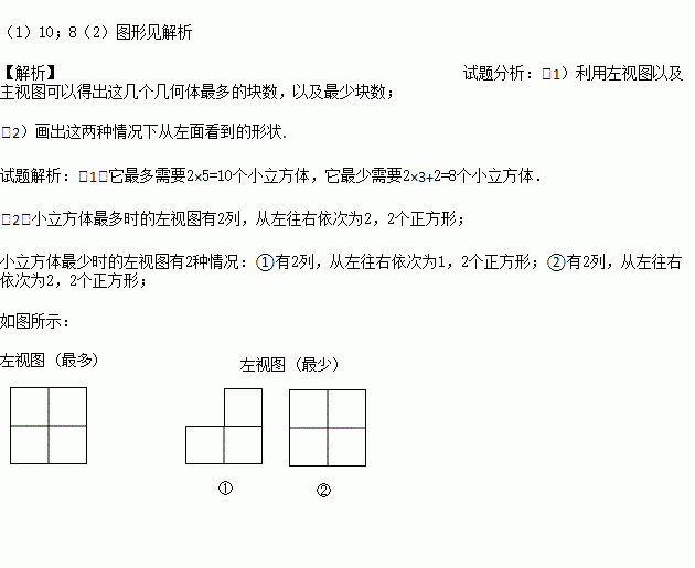 (1)它最多需要多少个小立方体?它最少需要多少个小立方体?