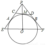 如图,过⊙O外一点P作⊙O的两条切线,切点分别为A、B,点M是劣弧AB上的任一点,过M作⊙0的切线分别交PA、PB于点C、D,过圆心O且垂直于OP的直线与PA、PB分别交于点E、F,那么的值为( )