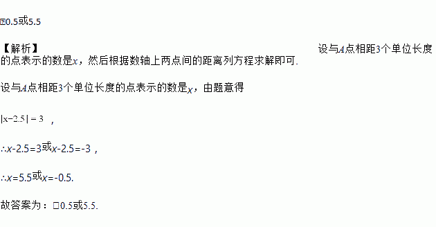 在数轴上的点A表示的数为2.5,则与A点相距3个单位长度的点表示的数是_____.