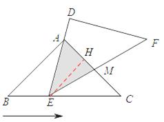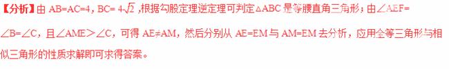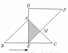 ,△ABC不动,△DEF运动,并满足:点E在边BC上沿B到C的方向运动,且DE始终经过点A,EF与AC交于M点。探究:在△DEF运动过程中,重叠部分能否构成等![]()