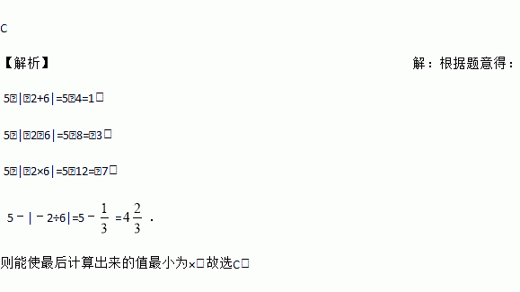 在算式中的“”所在位置,填入下列哪种运算符号,能使最后计算出来的值最小( ).