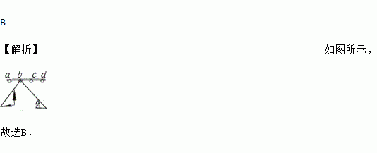 某舞台的上方共挂有a,b,c,d四个照明灯,当只有一个照明灯亮时,一棵道具树和小玲在照明灯光下的影子如图所示,则亮的照明灯是( )