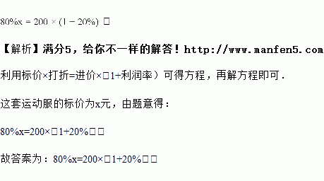 某专卖店一套运动服的进价为元,若按标价的销售,仍可以获利.设标价为元,根据题意,可列方程________.