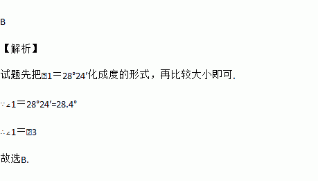 已知∠1=28°24′,∠2=28.24°,∠3=28.4°,下列说法正确的是( )