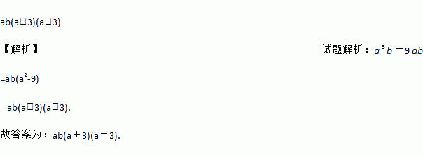 分解因式: a 3 b -9 ab =_______________.