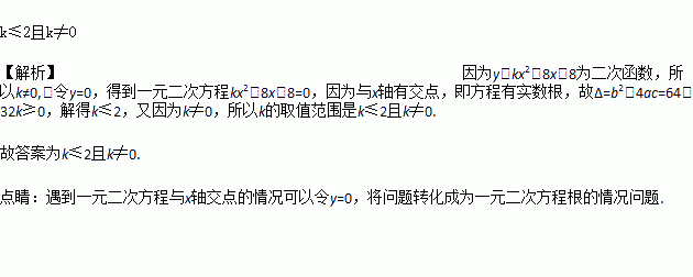 若二次函数y=kx2-8x+8的图象与x轴有交点,则k的取值范围是______.
