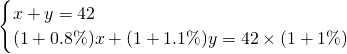 等量关系:①城市现有人口42万人;②一年后城镇人口增加0.8%,农村人口增加1.1%,这样全市人口共增加1%.