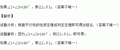 如图,从下列四个条件∠1+∠2=180°、∠2=∠3、∠1+∠3=180°、l1∥l2中选一个作为题设,一个作为结论,写出一个真命题为