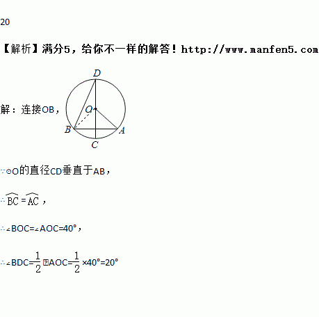 如图,⊙O的直径CD垂直于AB,∠AOC=48°,则∠BDC= 度.