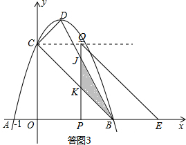 由抛物线解析式,得顶点D的坐标为(1,4).