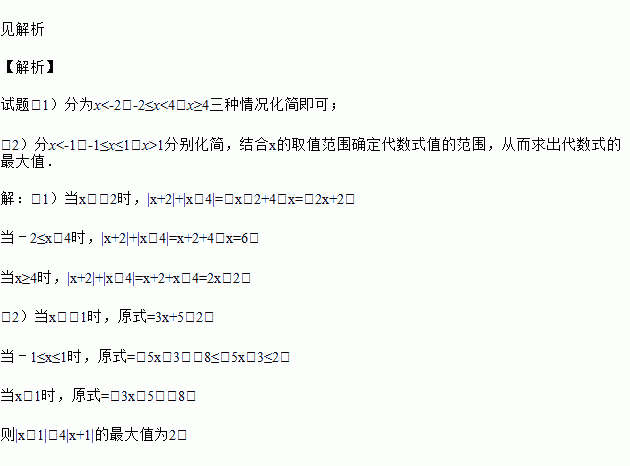 化简(1)|x﹣4|﹣|x+2|.