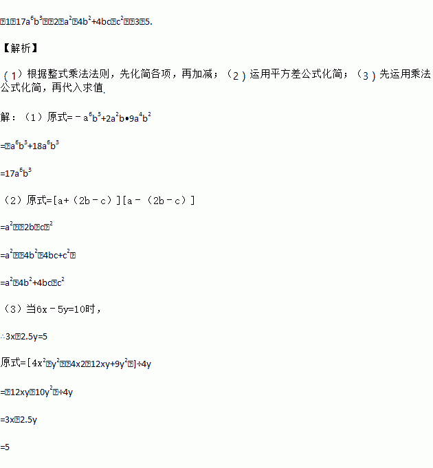 (1)﹣(a2b)3+2a2b•(﹣3a2b)2