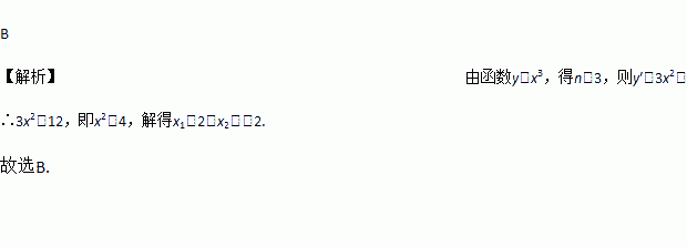 给出一种运算:对于函数y=xn,规定y′=nxn-1.例如:若函数y=x4,则有y′=4x3.已知函数y=x3,则方程y′=12的解是( )