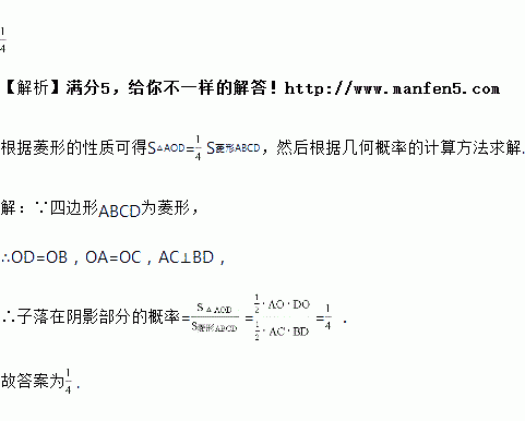 如图,在一块菱形菜地ABCD中,对角线AC与BD相交于点O,若在菱形菜地内均匀地撒上种子,则种子落在阴影部分的概率是__________.