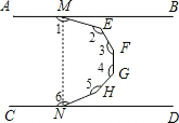 则六边形MEFGHN的内角和为∠NME+∠2+∠3+∠4+∠5+∠MNH=(6-2)×180°=720°,