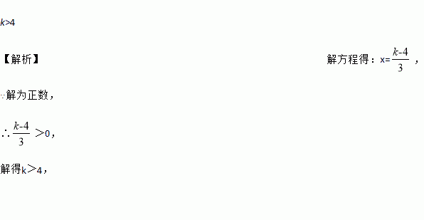 关于x的方程3(x+2)=k+2的解是正数,则k的取值范围是__________.