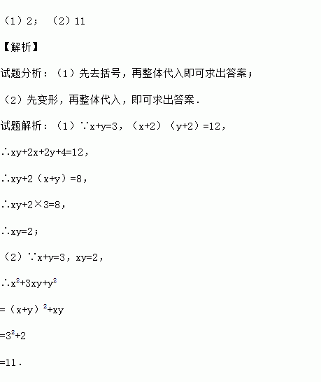 (1)求xy的值; (2)求x2+3xy+y2的值