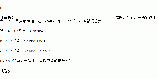 利用一副三角板上已知度数的角,不能画出的角是( )
