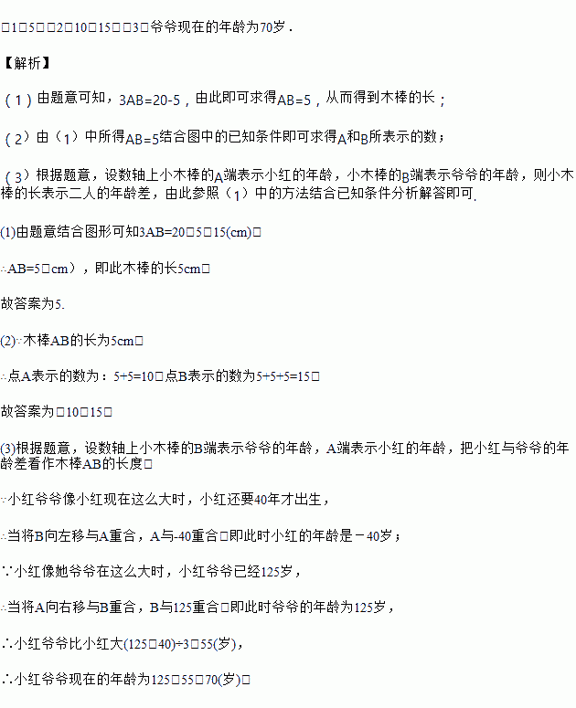 (1)若将木棒沿数轴水平向右移动,则当它的左端点移动到点B处时,它的右端点在数轴上所对应的数为20;若将木棒沿数轴水平向左移动,则当它的右端点移动到点A处时,它的左端点在数轴上所对应的数为5,由此可得到木棒的长为________cm.