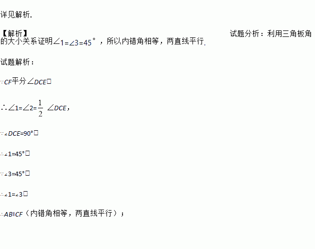 将一副三角板拼成如图所示的图形,过点C作CF平分∠DCE交DE于点F.求证:CF//AB