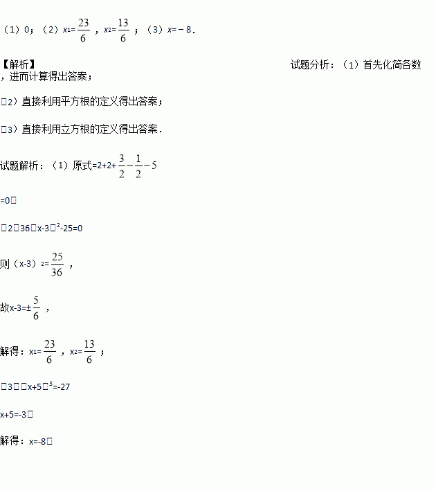 (2)36(x﹣3)2﹣25=0