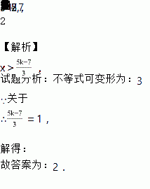 已知关于x的不等式3x-5k>-7的解集是x>1,则k的值为________.