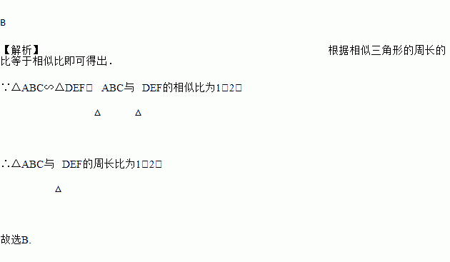 若△ABC∽△DEF,△ABC与△DEF的相似比为1:2,则△ABC与△DEF的周长比为( )