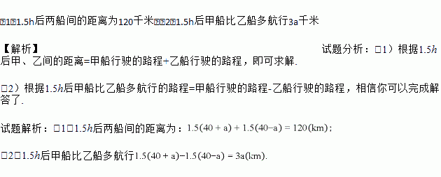 两船从同一港口同时出发反向而行,甲船顺水,乙船逆水,两船在静水中的速度都是40km/h,水流速度是a km/h.