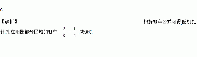 如图,在平行四边形纸片上作随机扎针试验,针头扎在阴影区域内的概率为( )