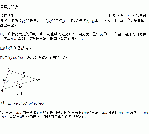 ② 过点D分别画DE⊥AB,DF⊥AC,垂足分别为点E、F;