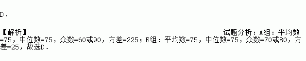 已知组四人的成绩分别为90、60、90、60,组四人的成绩分别为70、80、80、70,用下列哪个统计知识分析区别两组成绩更恰当( )