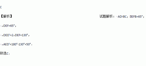如图,将矩形纸带ABCD,沿EF折叠后,C、D两点分别落在C′、D′的位置,经测量得∠EFB=65°,则∠AED′的度数是( )