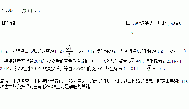 如图,等边三角形的顶点, ,规定把等边“先沿轴翻折,再向左平移个单位”为一次变换,如果这样连续经过次变换后,等边的顶点的坐标为__________.