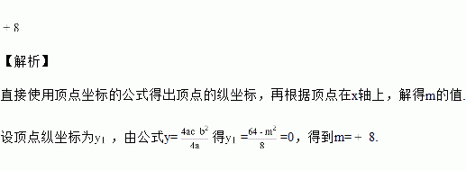二次函数的图象顶点在x轴上,则m的值是_______________.
