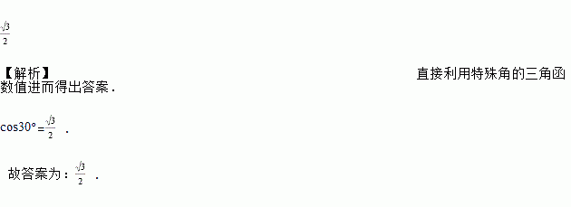 cos30°=__________