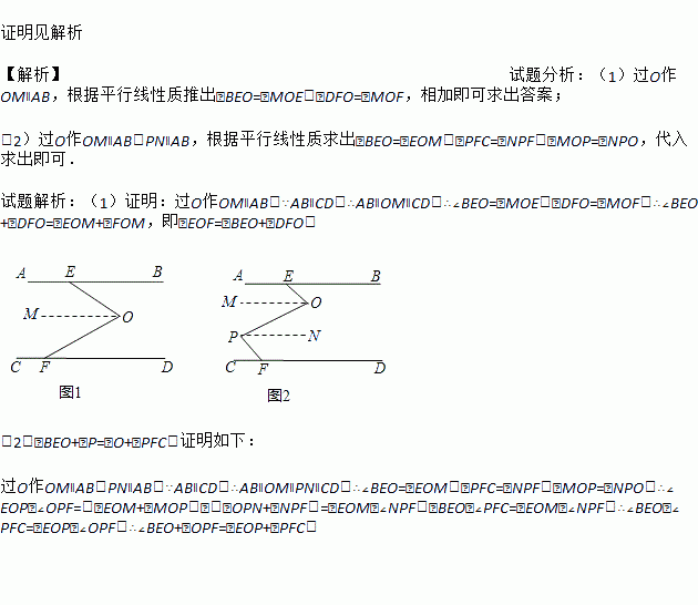 如图1,AB∥CD,EOF是直线AB、CD间的一条折线.