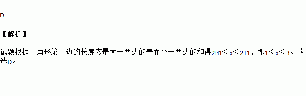 一个三角形的三条边长分别为1、2,则x的取值范围是