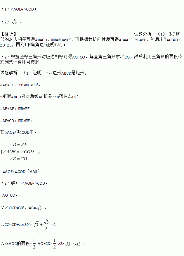 如图,四边形ABCD是矩形,把矩形沿对角线AC折叠,点B落在点E处,CE与AD相交于点O.