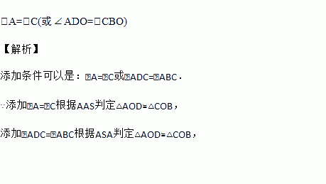 如图,AB、CD相交于点O,AD=CB,请你补充一个条件,使得△AOD≌△COB,你补充的条件是______ .