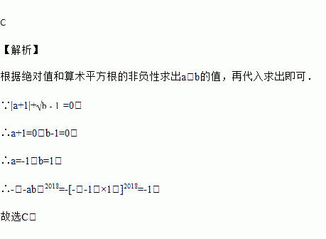 若a,b为实数,且|a+1|+=0,则﹣(﹣ab)2018的值是( )