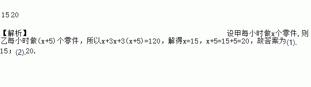 甲接到120个零件的任务,工作1小时后,因要提前完成任务,调来乙与甲合作,共同做了3小时后完成.已知甲每小时比乙少做5个零件,则甲、乙每小时分别做______个,______个零件。