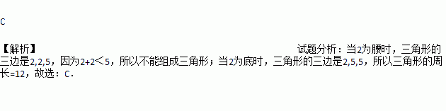 如果等腰三角形的两边长分别为2和5,则它的周长为( )