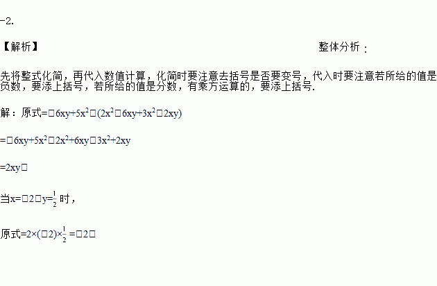 先化简,再求值:2(﹣3xy+x2)﹣[2x2﹣3(2xy﹣x2)﹣2xy],其中x=﹣2,y=.