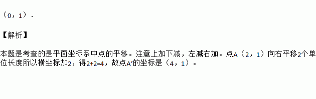将点A(2,1)向左平移2个单位长度得到点A′,则点A′的坐标是 .