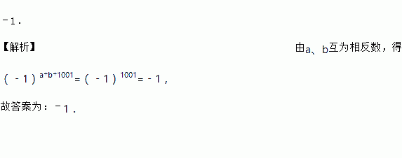若a、b互为相反数,则(﹣1)a+b+1001=_____.