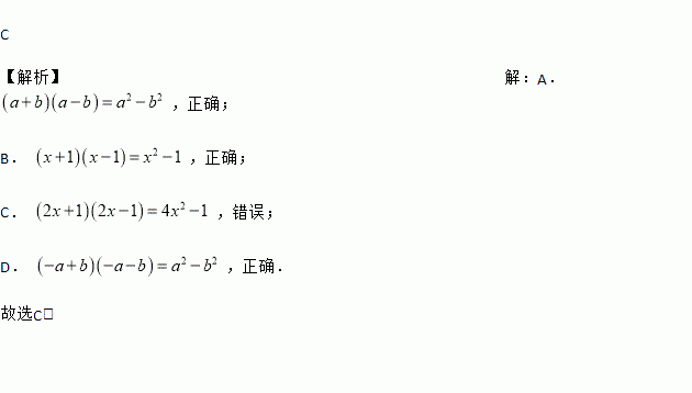 下列运用平方差公式计算,错误的是( ).