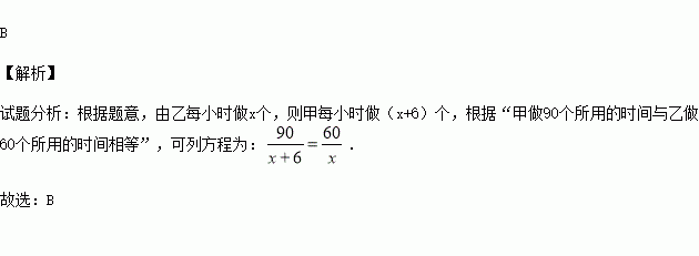 甲、乙二人做某种机械零件.已知甲每小时比乙多做6个,甲做90个所用时间与乙做60个所用时间相等,求甲、乙每小时各做零件多少个.如果设乙每小时做